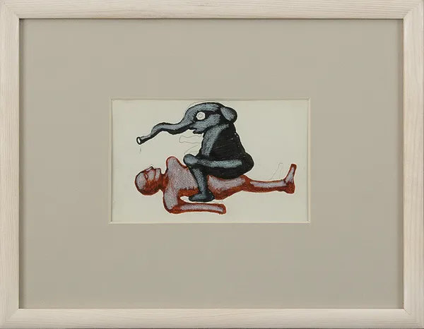gwasz, ołówek, papier - 9.8 cm x 15.9 cm