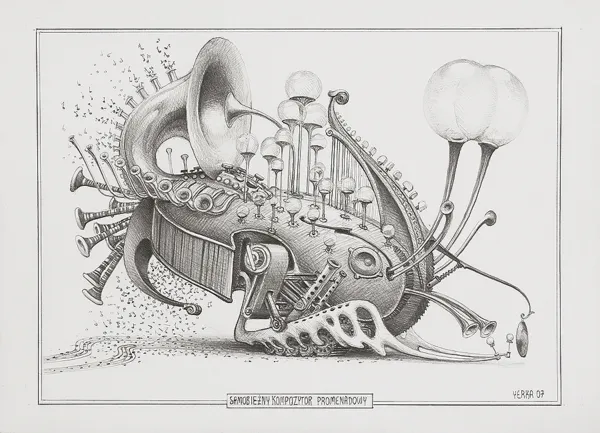 sygn. p.d.: YERKA 07; śr. w ramce tytuł: SAMOBIEŻNY KOMPOZYTOR PROMENADOWY