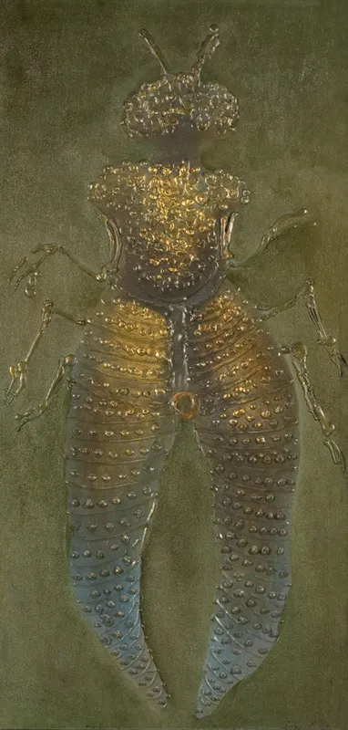 Na odwrocie na płótnie napis : „Reptile” | Lebenstein | „Diptere” (przekreślone) | 1974 | acrylique et huile.