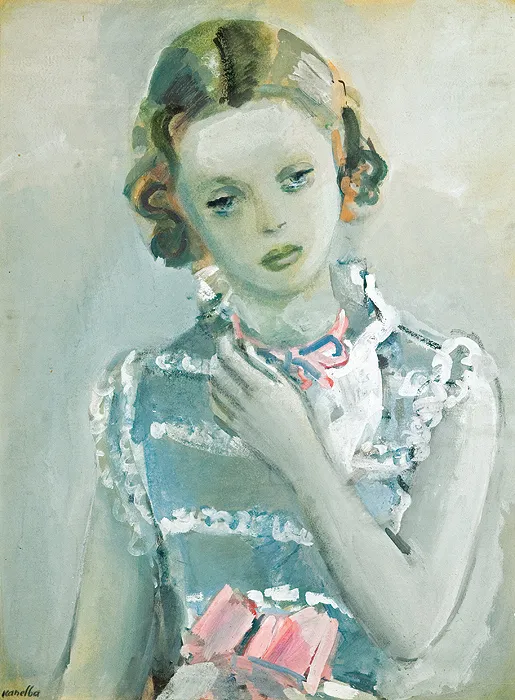 DZIEWCZYNKA Z RÓŻOWĄ KOKARDĄ, przed 1940