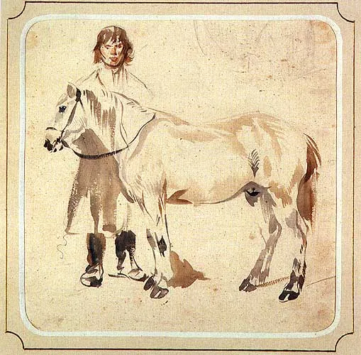 Akwarela pochodzi ze zbiorów rodziny artysty - na odwrocie kartka z odręcznym napisem: Akwarela mego pradziadka/Piotra Michałowskiego/Kraków, sierpień 1970/Adam Michałowski.