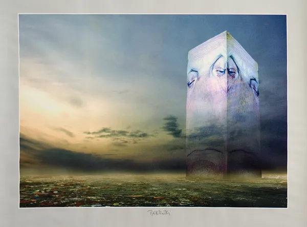 na odwrocie l.d. stempel Galerii Sztuki Biuro Podróży Plus Zygmunta Korusa w Chorzowie, obok napis niebieskim atramentem: ® Beksiński - épr. d’art | © Korus - 2003