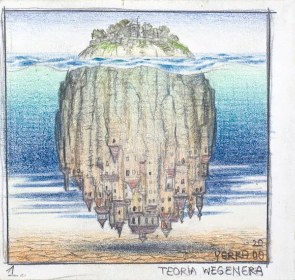 sygn. oł. wewnątrz kadru p.d.: YERKA 20 | 00, pod kadrem: l.: I., p.: TEORIA WEGENERA.