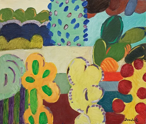 na odwrocie na płótnie napis autorski: DOMINIK 1993 | OIL - ON CANVAS | GARDEN