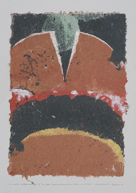na podkładzie l.d.: „... z cyklu portrety wewnętrzne - I” ** papier ręcznie czerpany * tech. własna ** 2009**, p.: Ewa Latkowska-Żychska *