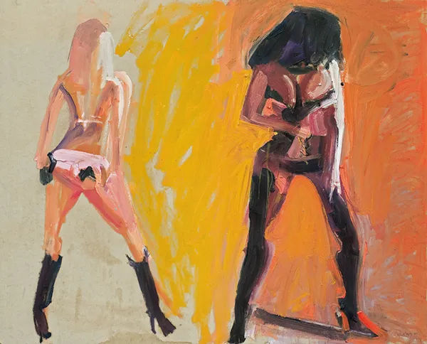 Obraz pochodzi z cyklu prezentowanego na wystawie zatytułowanej „Miłość spod wycieraczki” w Starej Prochowni w 2009 roku. Inspiracji dla obrazów dostarczyły ulotki z ofertą seksualną, wtykane nachalnie pod wycieraczki samochodów. Malarski impuls znalazł temat na ulicy i w pracowni zamieniał się w formę coraz pewniej, więcej, mocniej, aż do wyczerpania malarskich środków. W krótkim czasie powst...