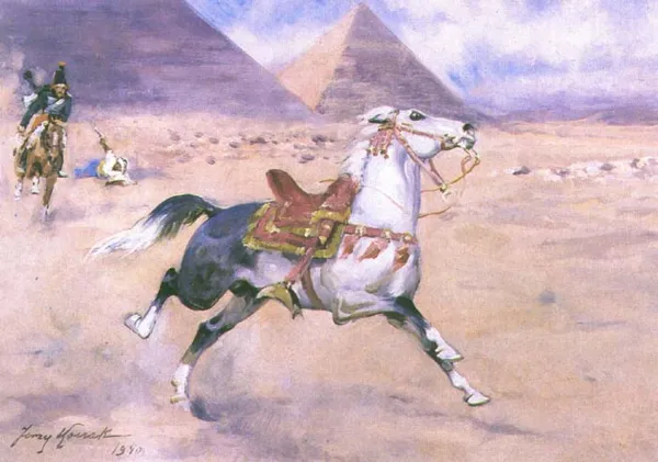 Na odwrocie ślad zatartej pieczęci potwierdzającej autorstwo Jerzego Kossaka.