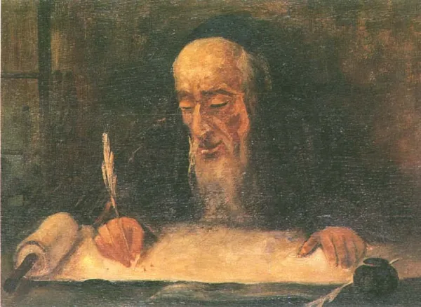 Tematem szczególnie często i chętnie podejmowanym przez Markowicza były sceny rodzajowe z życia żydowskiej dzielnicy Krakowa ("Talmudyści", "Adoracja Tory"); prezentowany obraz jest jednym z wielu o podobnej tematyce.