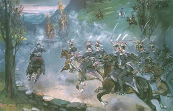 Słynna szarża kawaleryjska pod wodzą pułkownika szwoleżerów Jana Kozietulskiego w wąwozie Somosierra 30 listopada 1808 r. otworzyła Napoleonowi drogę do Madrytu. Ten epizod wojen napoleońskich malował Jerzy Kossak kilkakrotnie, nawiązując do obrazów ojca, który w swoim czasie podróżował do Hiszpanii i odbył studia w terenie.