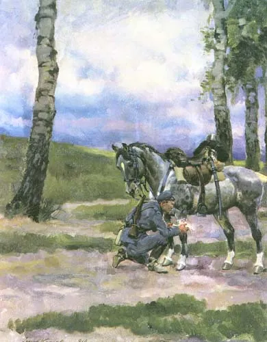Ułan opatrujący konia