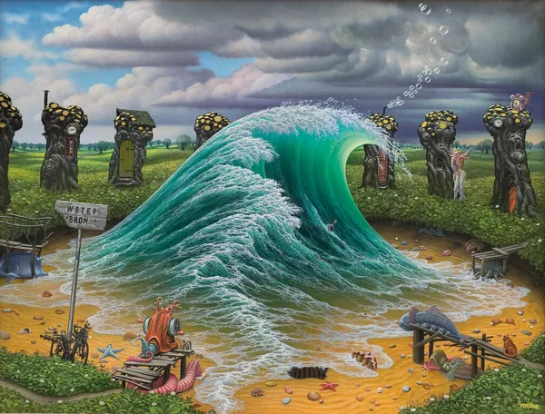 na odwrocie na krośnie napis autorski: JACEK YERKA | „PRYWATNA FALA“ | AKRYL 2000