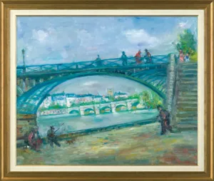 Na bocznej listwie krosna napis farbą: 96357D; - na listwie górnej częściowo zachowana nalepka z napisem atramentem: Pont des Art[.] | N 11. Oil | By Jacques Zucker; - obok ołówkiem: IIII