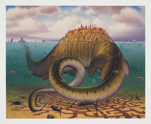 sygn. z matrycy p.d.: YERKA04, sygn. oł. pod ryc. l.: 9/50, śr.: »BRONTOSAURUS CIVITAS«, p.: Yerka