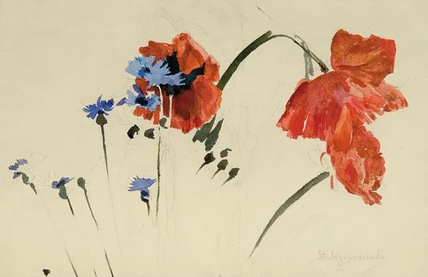Prezentowane studium polnych kwiatów pochodzi zbiorów Józefa Mehoffera – w załączeniu poświadczenie pani Anny Mehoffer-Lewandowskiej oraz, opatrzona bogatym materiałem porównawczym, ekspertyza pani Marty Romanowskiej, b. kustosza Muzeum Stanisława Wyspiańskiego w Krakowie.