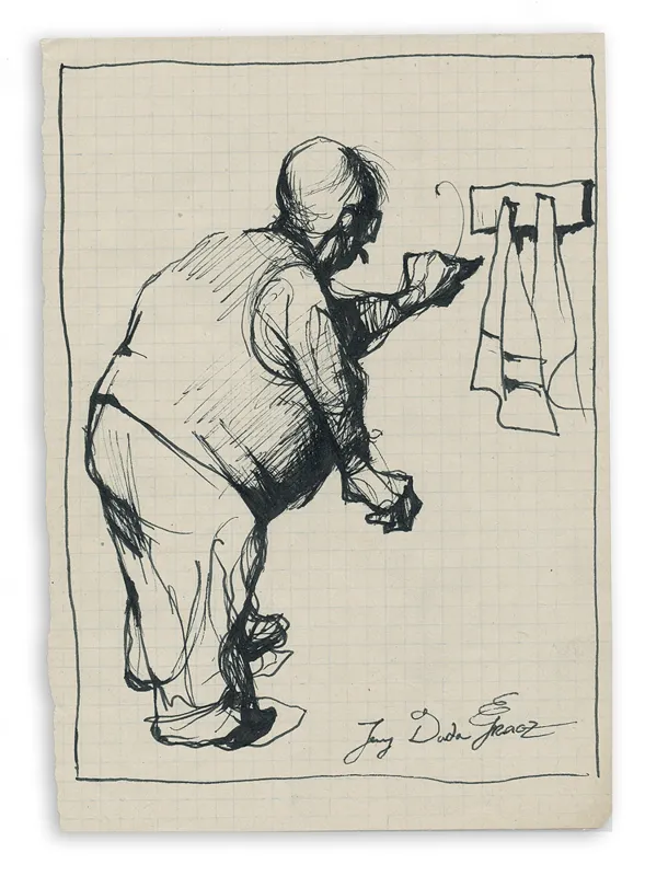 atrament pióro, papier zeszytowy w kratkę kremowy