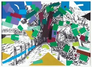Fangor swoje rysunki, początkowo te, które zostały po czterdziestu latach odnalezione, później także szkice i rysunki powstałe w latach dziewięćdziesiątych, ogląda na nowo z perspektywy tych minionych lat [...]W rękach osiemdziesięcioletniego artysty znalazły się rysunki trzydziestolatka, autorzy są bardzo sobie bliscy, ale dzielą ich dziesięciolecia i to wszystko, czego w tym czasie można było doświadczyć. Fangor jest zbyt mało sentymentalny i zbyt kreatywny, by rzeczy zostawić samym sobie. Skoro dystans tych kilku dziesięcioleci jest ewidentny, zatem trzeba go wykorzystać. Artysta postanowił zrobić to w ten sposób, że rysunki, krok po kroku, pozbawiał podmiotowości związanej z oryginalnością i unikalnością. Najpierw je sfotografował, po zeskanowaniu, w nowej skali wydrukował. Początkowo wydruki były na papierze przyklejanym do pianki poliuretanowej, w ostatniej serii obrazów artysta zdecydował się drukować wprost na płótnie. [...] Zerwano z rysunkiem, pojawiło się coś bliższego szablonowi, raczej negatywowi szablonu – w każdym bądź razie podstawą, kanwą obrazu, stało się niezupełnie czyste płótno. Fakt ten sprzyja kojarzeniu procesu powstawania tych obrazów z technikami znanymi skądinąd, tak przygotowana kanwa staje się przesłanką i ramą zarazem, wyzwaniem i ograniczeniem, scenariuszem i przestrzenią, w której [...] powstaje obraz, wynurza się z nakładanych na siebie geometryzowanych środków wyrazu i barwnych plam, przyklejanych kawałków kolorowego papieru i pociągnięć pędzla. Ścierają się tu ze sobą stare i nowe, organiczne i geometryczne, gotowe i tworzone, to, co pod z tym, co nad, wzmacniając i znosząc się nawzajem. [...]