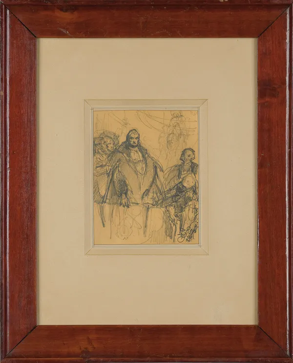 We wnętrzu wieży katedry na Wawelu, oparty o parapet okna stoi Zygmunt I Stary, zasłuchany w dźwięk dzwonu. Obok niego, po prawej Stańczyk (z głową wspartą na rękach), w głębi zarysy innych postaci. Rysunek jest jednym ze szkiców do olejnego obrazu Zygmunt I słuchający dzwonu, kompozycji rozpoczętej przez Matejkę w roku 1862 a poprawionej, uzupełnionej, ostatecznie ukończonej i podpisane...