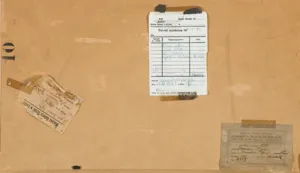 Na odwrocie stemple, napisy, nalepki: stempel: 10, napis niebieską kredką: Lp. 6300; ołówkiem: 15000 fr; 15000 f.