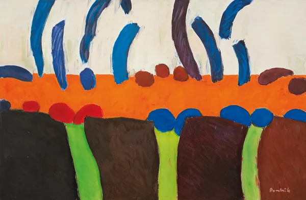 Na odwrocie na płótnie napis autorski: DOMINIK 2005 | OL. PŁ 98 x 120 | PEJZAŻ
