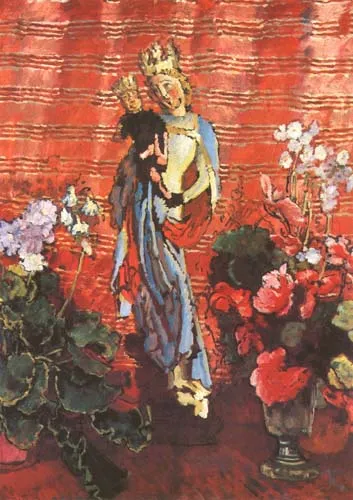 "Figurka Matki Boskiej z kwiatami"