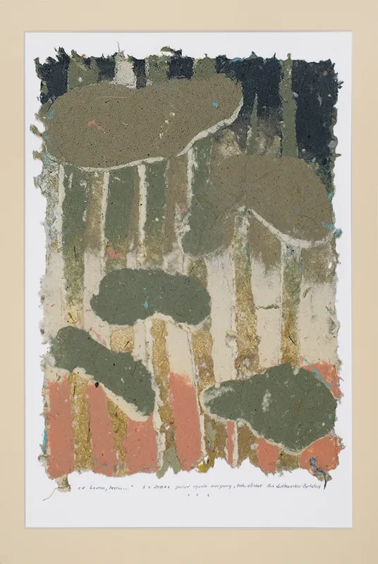 sygn. oł. p.d.: znak autorski, sygn. oł. na podkładzie l.: **borem, lasem...” ** 2011** papier ręcznie czerpany tech. własne Ewa Latkowska-Żychska | ***