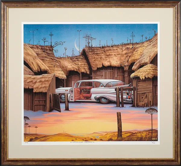sygn. oł. pod ryc. l.: 5/19, śr.:>>KOSMICZNA ZAGRODA<<, p.:Yerka