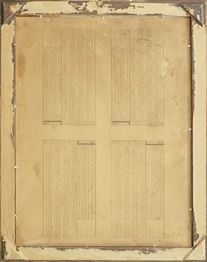 Na odwrocie na tekturę naklejony arkusz papieru z tabelami „Płacy dziennej“ (wartości opłat podane w koronach i halerzach).
