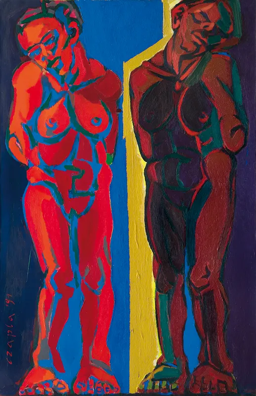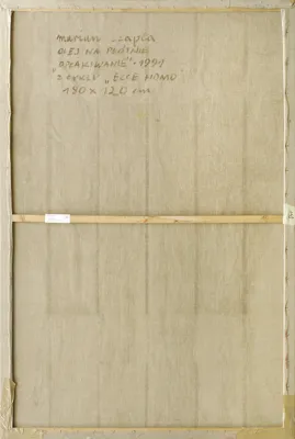 Na odwrocie na płótnie napis autorski: marian czapla | OLEJ NA PŁÓTNIE | „OPŁAKIWANIE“ - 1991 | Z CYKLU „ECCE HOMO“ | 180 x 120 cm.