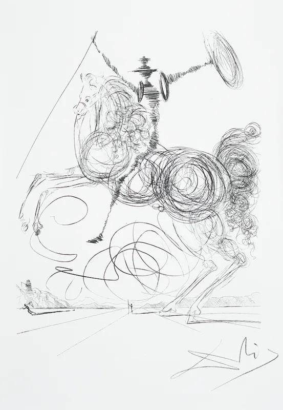 Reprodukcja akwaforty „Don Kichot”, 1964, 40 x 30, repr. w katalogu oeuvre graficznego artysty: Salvador Dali. Catalogue Raisonné of Etchings and Mixed-Media Prints 1924-1980. Edited by Ralf Michler and Lutz W. Löpsinger, Prestel, Munich – New York 1995, s. 141, kat. 99, il.
