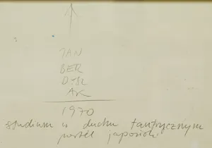 sygn. na odwr. oł.: JAN | BER | DYSZ | AK | 1970 | studium w duchu tantrycznym | pastel japoński, poniżej wycięcia dedykacja