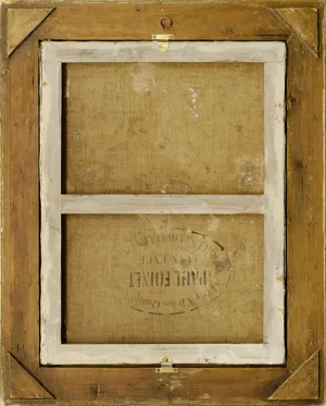 Na odwrocie płótna duży owalny stempel - założonej w roku 1880 - paryskiej firmy Paula Foinet’a oferującej farby i inne materiały malarskie: 54 RUE N.D. DES CHAMPS PARIS | PAUL FOINET | (VAN EYCK) | TOILES & COULEURS FINES.