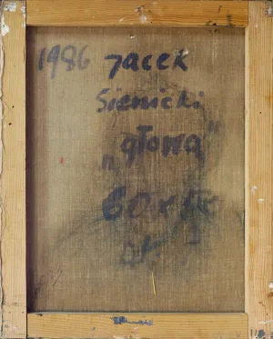 Na odwrocie na płótnie napis autorski: 1986 Jacek | Sienicki | „głowa“ | 60 x 50 | ol.