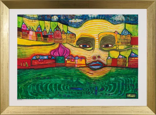 sygn. z płyty na metryczce p.d.: 691 ROMA 1969 | Hundertwasser, napis oł. pod ryc. p.: 24/980, podpis drukowany pod ryc. l.: HUNDERTWASSER 691 [w owalu] IRINALAND ÜBER DEM BALKAN, 1969 ● GICLEÉ-EDITION 980 EXEMPLARE ● ATELIER/DRUCKEREI T. GLASER ● AUF HAHNEMÜHLE ECHT-BÜTTEN GERMAN ETCHING 310 G/M2 ● COPYRIGHT 2006/GRUENER JANURA AG, GLARUS/SWITZERLAND ● PUBLISHED 2006 BY ars mundi