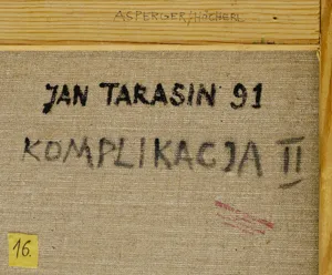 Na odwrocie na płótnie napis autorski: JAN TARASIN 91 | KOMPLIKACJA II