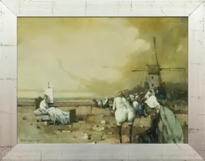 malowidło olejne na ceramicznym talerzu holenderskim