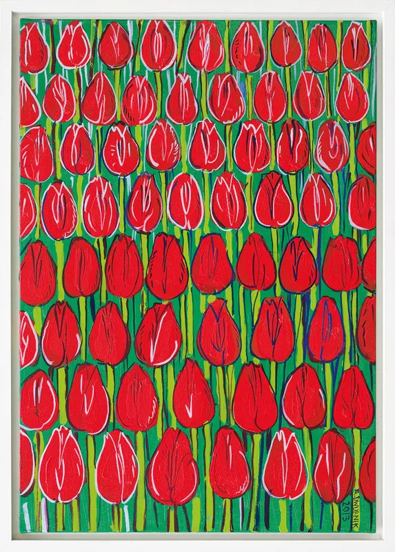 Na odwr. na płótnie napis autorski: 2013 | E. DWURNIK | „CZERWONE | TULIPANY“ | NR: XXIII [w ramce] - 544 = 4805 [w ramce]