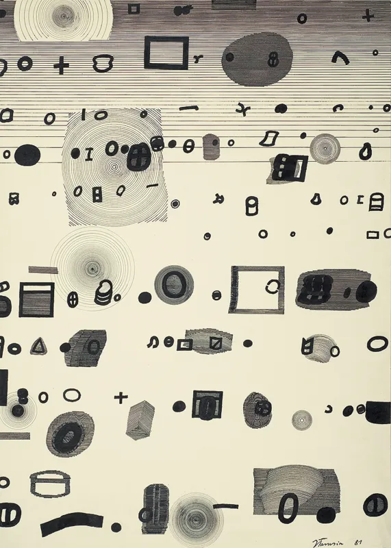 sygn. na odwr. dłg. p.d.: Jan Tarasin 1980 | Przedmioty w Przestrzeni, obok fragment stempla zezwolenia na wywóz, w p.g. rogu oł. napis: 25 [w kółku]