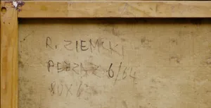 Na odwrocie na płótnie napis autorski: R. ZIEMSKI | PEJZAŻ 6/64 | 80 x 65.; Na krośnie napisy: 6/64, 82 x 65.