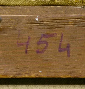 Na górnej listwie krosna napis tuszem: 454