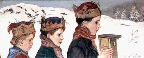 Tryptyk przypomina tradycyjne przedstawienia z trzema królami i pasterzami podążającymi do szopki – tu jednak dzieci kierują się ku drewnianej budce dającej schronienie ptakom w czas mroźnej zimy.