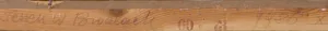 Na odwrocie - na górnej listwie krosna - napis ołówkiem: Jesień w Brodach 1986 X. Na listwie dolnej wypełniony ręcznie stempel kolekcji z metryczką obrazu.