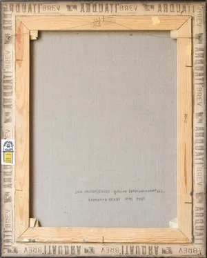 Na odwrocie na płótnie sygn.: JAN MŁODOŻENIEC „godzina śródziemnomorska“ | tempera 65 x 81 maj 1999
