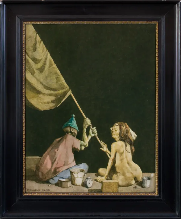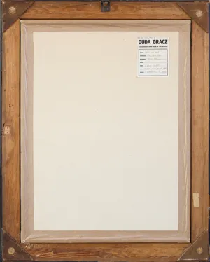 Na odwrocie na płycie nalepka autorska: UZ III 1967/ 86 V | DUDA GRACZ | PADEREWSKIEGO 42 B/31 KATOWICE | TYTUŁ OBRAZ NR 848 | TECHNIKA OLEJ, PŁ. PILŚN. | WYMIARY 72 x 54 cm | CENA.... | SYGN. DUDA GRACZ | ROK 1984/NR KATAL.AUTOR. 848 | UWAGI 1. WERNIKS. IX. 1984