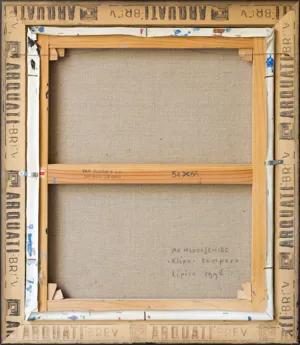 Na odwrocie na płótnie sygn.: JAN MŁODOŻENIEC | „Klips“ tempera | Lipiec 1998