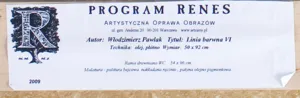 Na odwrocie na ramie nalepka firmy Program Renes z danymi obrazu.
