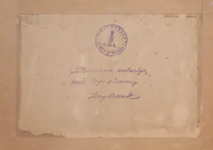 Na odwrocie dwa często stosowane przez artystę stemple potwierdzające autorstwo: