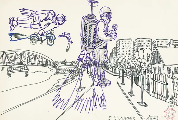 sygn. oł. p.d.: E. DWURNIK 1973 1973, obok okrągła pieczątka: RYSUNEK | E. DWURNIK wypełniona ręcznie oł.: 8. | c.78; powyżej oł.: 4.389.