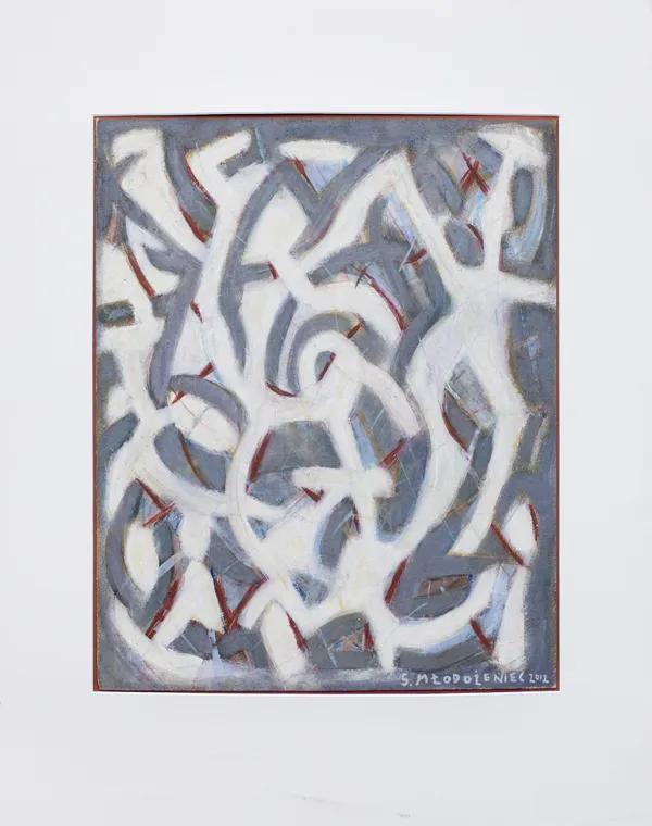 na odwr. oprawy p.g. tuszem: Stanisław Młodożeniec 2012 | Olej / Akryl / 34,5 x 42,5, niżej nalepka z numerem akwarelą: 04/450