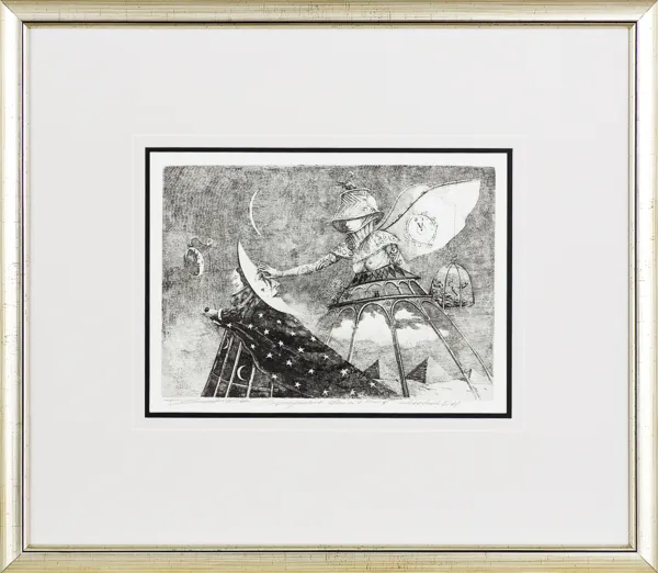 sygn. oł. pod ryc.: T Sętowski "Pożegnanie dnia z nocą" akwaforta EA