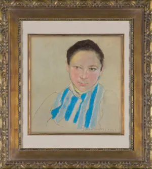 Portret łączy się z zespołem prac powstałych ok. 1895 roku; można go porównać np. z Portretem dziewczynki w niebieskim kapeluszu ze zbiorów Muzeum Narodowego w Krakowie; ma tę samą intensywność wyrazu i koloryt, a przy tym idealnie wpisuje się w oczekiwania odbiorcy względem jego autora, Stanisława Wyspiańskiego.
